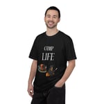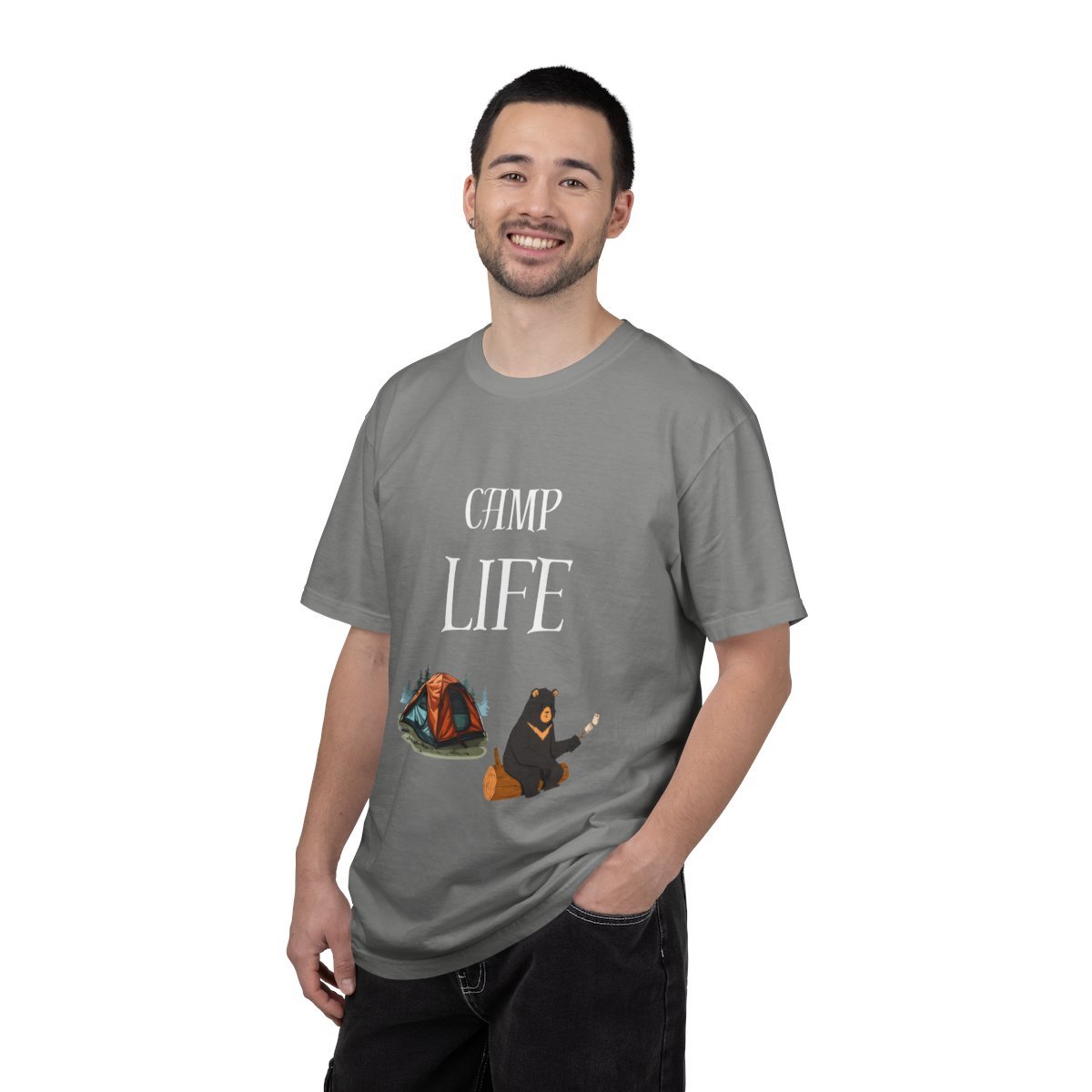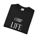 Call up the crackle of a campfire and the hush of pine. This heavyweight garment-dyed tee wears soft like a well-loved favorite and carries a little wilderness with it — a cozy tent illustration and a bear toasting marshmallows under the words “CAMP LIFE.” Short hikes, slow evenings at the campground, or weekend drives to dispersed sites: it layers easily under a flannel or stands on its own. The relaxed cut and durable double-needle construction mean it moves with you on trails and holds up through washes, while the garment-dyed finish gives each shirt a lived-in tone that fades beautifully over time. Available in a wide range of colors and sizes so you can pick the shade that fits your campsite palette.
