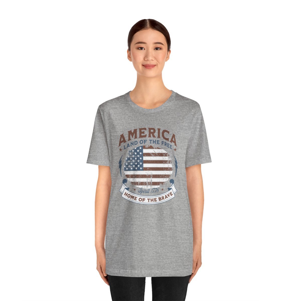 America Vintage Flag T-Shirt – "Land of the Free, Home of the Brave" Patriotic Tee