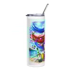 This 20oz stainless steel tumbler brings beach-day color and laid-back rum-bar energy to your everyday routine. The slim, cylindrical silhouette fits most cup holders while offering a full 360° printable canvas covered by a glossy protective varnish that keeps the vibrant design vivid through daily use. It arrives with a clear lid and reusable straw so you can sip cold drinks on the go — from iced coffee during morning commutes to cool cocktails at sunset. Durable, rust-resistant stainless steel construction makes it a travel-ready companion for warm-weather escapes and outdoor hangs.