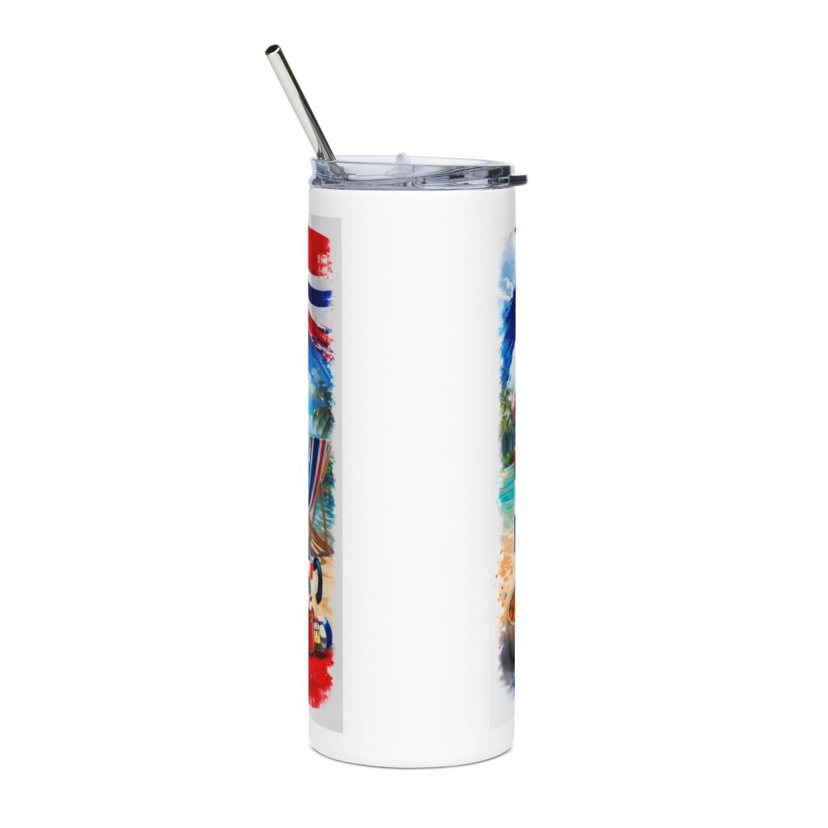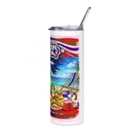 This 20 oz stainless steel tumbler carries vibrant Dominican-inspired artwork that brings sea breeze mornings and backyard bachata into your daily rhythm. Tall and slim, it slips into cup holders and stays with you through long drives, beach days, and family gatherings. The glossy protective coating keeps colors alive while the included lid and straw make sipping easy and spill-aware. Hold it and feel a small, portable celebration—coconut, avocado, cold cerveza, and the flag rippling in a warm wind—ready to go wherever your story leads.