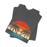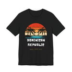 Soft, breathable tee built for sun-soaked days and easy travel. This lightweight jersey shirt features a vintage-inspired sunset graphic with palm silhouettes and bold “Dominican Republic” lettering — a quietly nostalgic nod to sandy evenings and ocean breeze. The crew neckline and retail fit keep the silhouette clean for layering or wearing solo. It’s designed for adults who want a comfortable, lived-in feel without sacrificing style, whether wandering local markets, lounging by the beach, or heading out for a casual evening that feels a touch adventurous.
