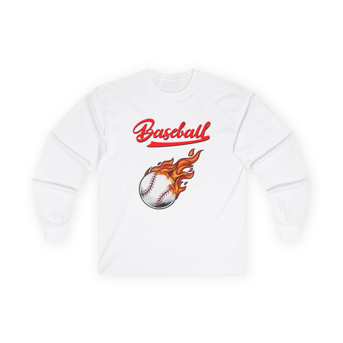 Flaming Baseball Long Sleeve Tee — "Baseball" Graphic