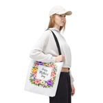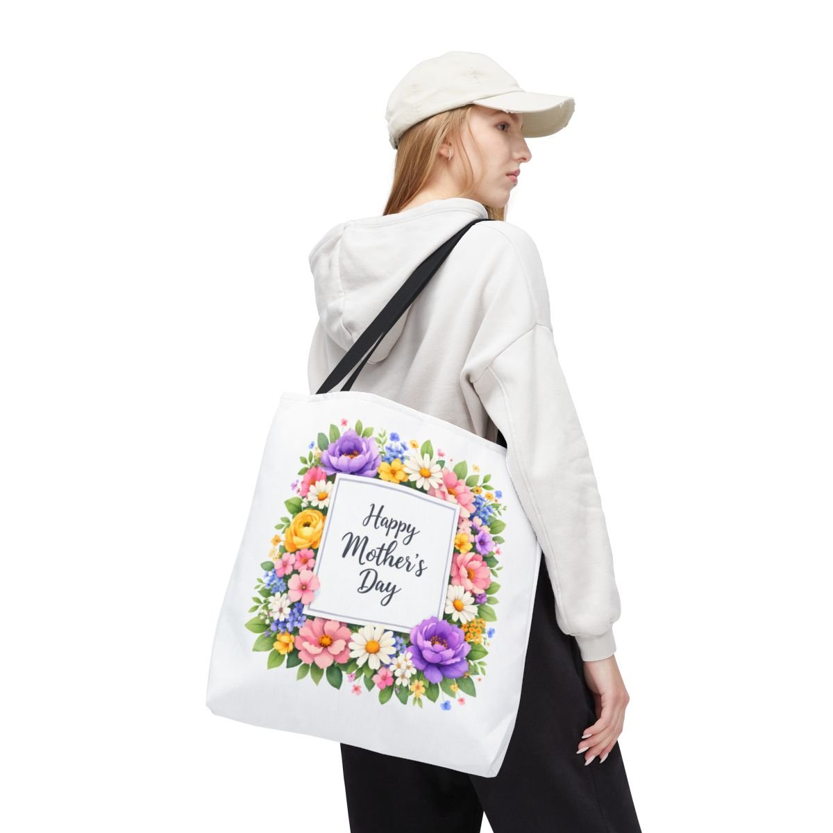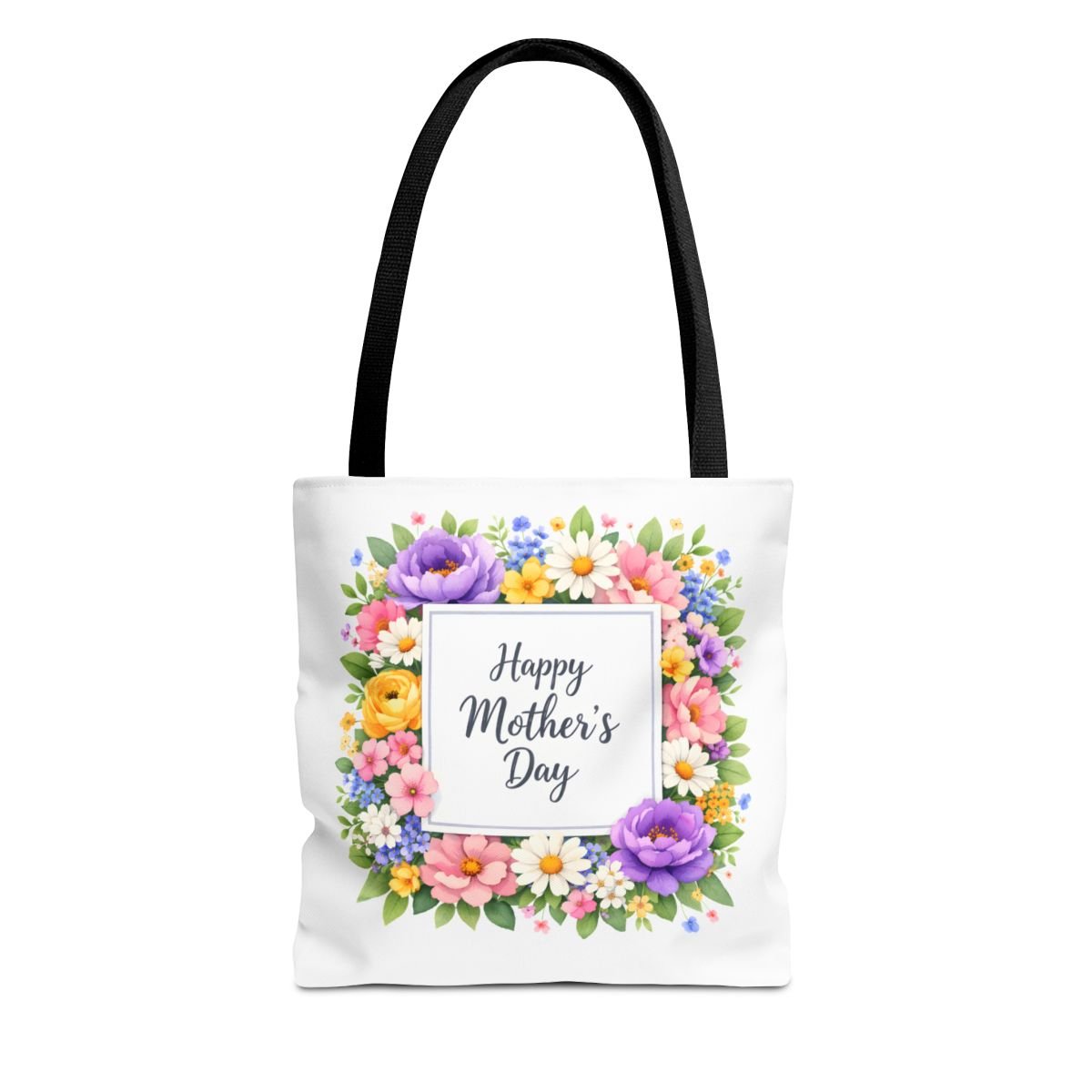 Bright, cheerful, and full of spring warmth — this floral tote carries a quiet celebration. Soft watercolor blooms frame a handwritten 'Happy Mother's Day' center, giving the bag a heartfelt, home-made feel that reads like a note left on the kitchen table. Lightweight but sturdy, the roomy interior and boxed corners hold groceries, books, or weekend markets without losing shape. Swap the handle color to match her style and watch this become the bag she reaches for when she wants something both practical and sentimental. It’s the kind of everyday piece that turns errands into small moments of joy.
