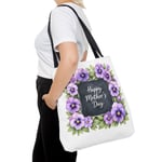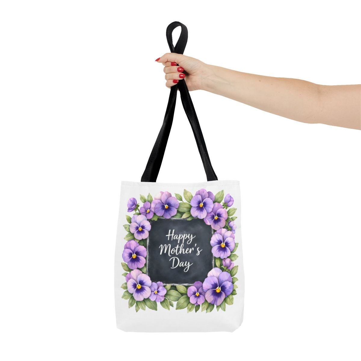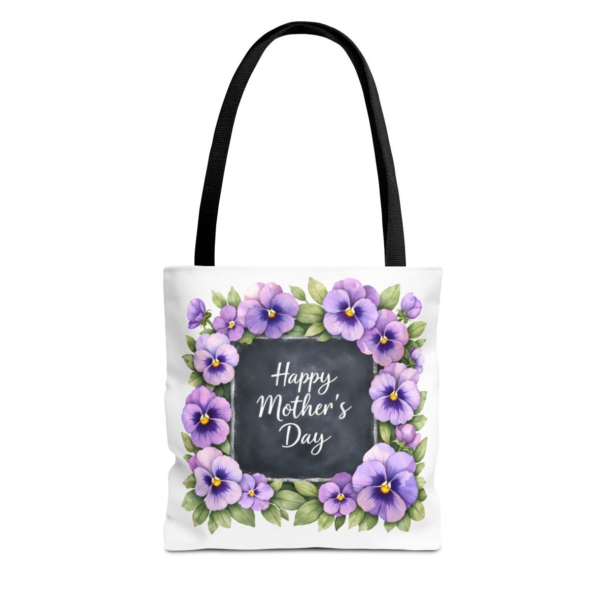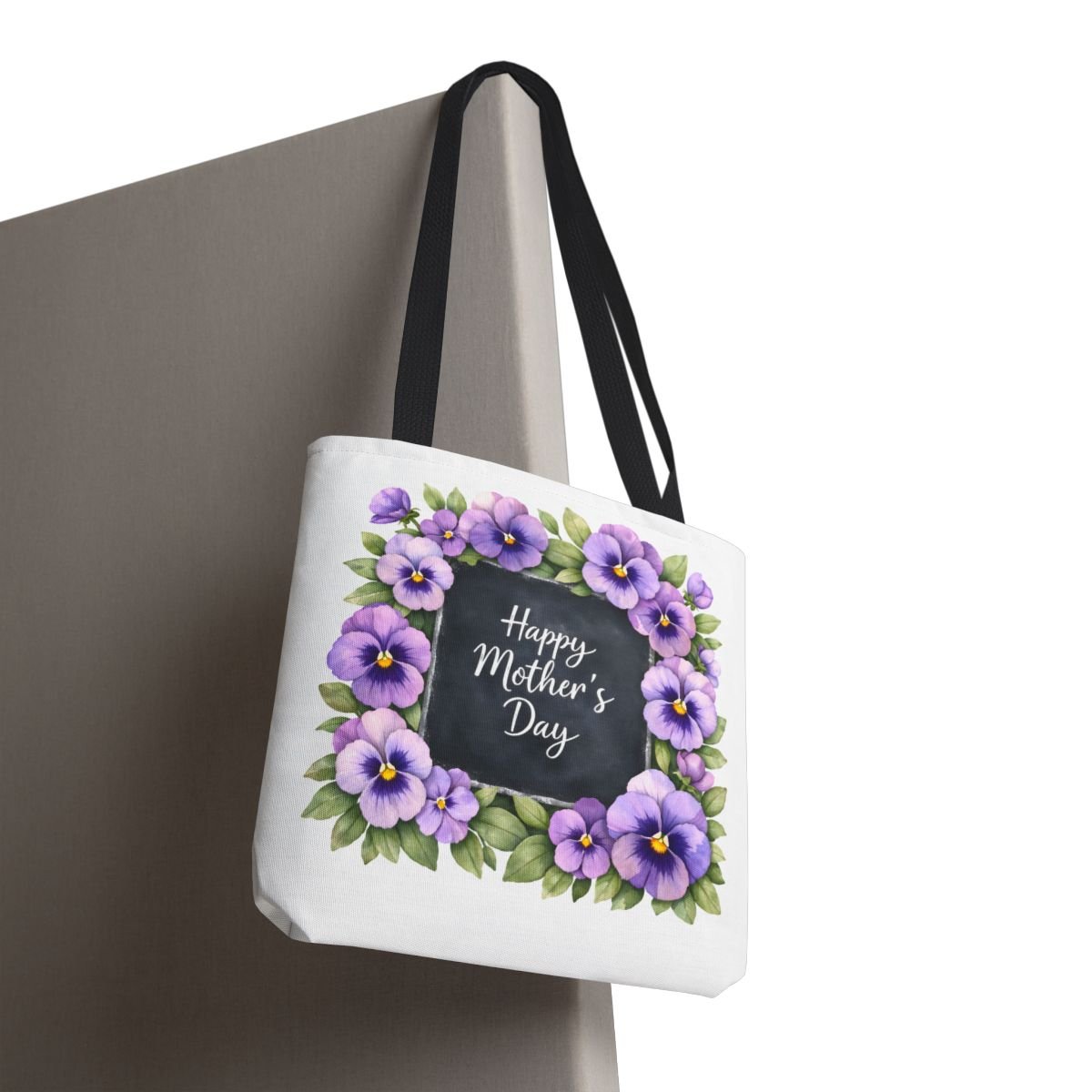 Mother's Day Floral Tote Bag — "Happy Mother's Day" Purple Pansy Gift Tote