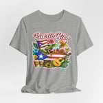 This lightweight jersey tee brings a burst of Puerto Rican pride to everyday wear. Soft, breathable Airlume combed cotton keeps you cool while the vivid front illustration—featuring the Puerto Rican flag, coquí frog, palm leaves, maracas, and a cuatro—reads like a postcard from the island. The retail fit and crew neckline make it easy to layer under a jacket or wear on its own at beach days, local festivals, or weekend hangouts. Thoughtfully made: side seams and shoulder tape maintain shape, a ribbed knit collar holds its stretch, and a tear-away label keeps things comfortable against skin. REACH-certified materials and ethical manufacture add a quiet confidence to a proudly colorful design.